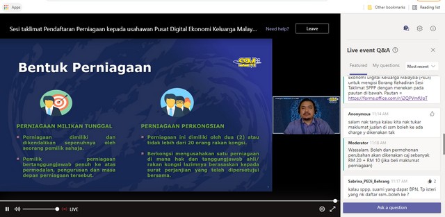 Program Skim Pendaftaran Perniagaan Prihtain ) bagi usahawan sekitar Pusat Digital Ekonomi (PEDi)