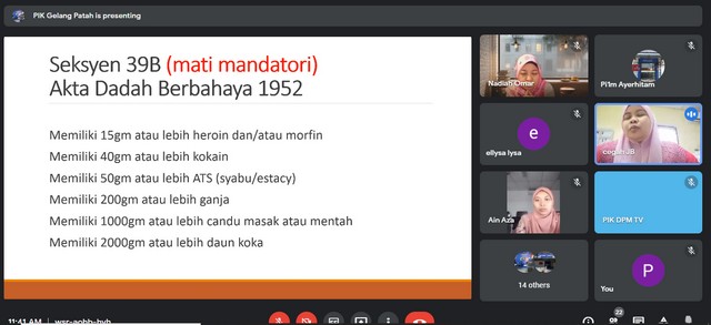 19 Disember 2021 | Aktiviti TerkiniProgram Cegah Dadah adalah program yang dijalankan oleh PEDi dan juga pihak Agensi Anti dadah Kebangsaan AADK. Tujuan program ini diadakan adalah untuk memberi pendedahan kepada para remaja dan juga ibu-bapa mengenai risiko dan kesan terhadap penyalah gunaan barang terlarang “Dadah” seperti Methaphetamine, Syabu dan lain-lain lagi. Pihak AADK turut menasihatkan agar golongan belia yang di berumur 19-39 tahun agar sentiasa berhati-hati untuk tidak terjerumus dalam kancah ini kerana mereka adalah golongan yang paling ramai terjerumus kedalam kancah penyalahgunaan Dadah. Mengikut Statistik yang dikeluarkan oleh Agensi Anti-dadah Kebangsaan, pada tahun 2014 terdapat seramai 15,986 golongan belia yang terjerumus kedalam penyalahgunaan Dadah dan jumlah ini meningkat pada tahun 2019 iaitu seramai 18,986 orang. Peningkatan ini berada pada tahap yang membimbangkan, dan diharapkan semua pihak samada Kerajaan ataupun pertububuhan bukan kerajaan “NGO” mengambil serius pada isu ini agar ianya tidak berlarutan.