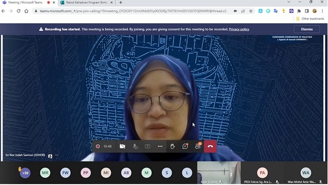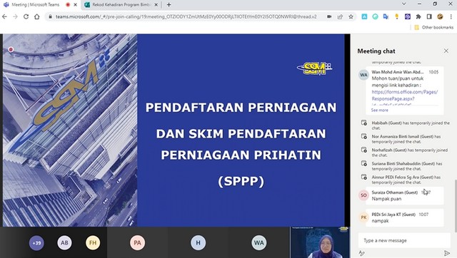 29 Mac 2022 | Aktiviti TerkiniPada 28 March 2022, telah diadakan Program Bimbingan Ushawasn 2022 yang dilangsungkan secara atas talian. Program ini adalah kalobrasi diantara Suruhanjaya Komunikasi dan Multimedia Malaysia (SKMM) dan juga Suruhanjaya Syarikat Malaysia (SSM) dimana 25 PEDi yang terplilih di Negeri Johor telah menghantar wakil bagi menghadiri taklimat pendaftaran sijil perniagaan secara percuma dibawah Skim Pendaftaran Perniagaan Percuma (SPPP), taklimat ini telah disampaikan oleh Puan Sri Nor Indah iaitu Pegawai daripada Suruhanjaya Syarikat Malaysia negeri Johor.