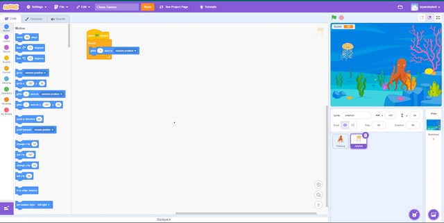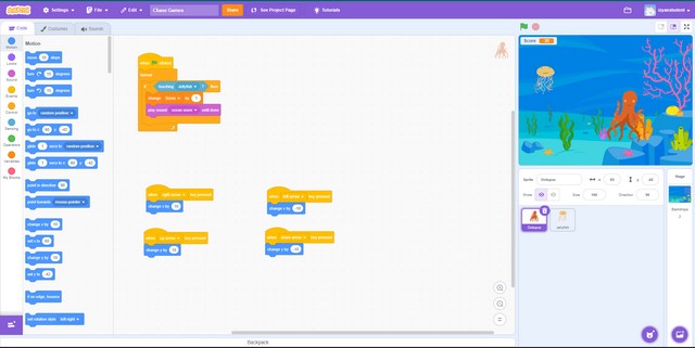 Pada 15 Disember 2023, PEDi Othman telah menjalankan lagi Kelas Asas Coding dengan mengunakan Scratch. Sub-topik pada hari ini adalah membuat ‘Chase game’. Kami mengunakan sotong sebagai Sprite utama dan haiwan laut yang lain sebagai sprite sampingan.