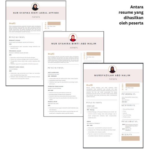 5 Februari 2023 | Aktiviti TerkiniResume merupakan salah satu dari keperluan bagi setiap individu yang ingin mencari pekerjaan. Secara ringkas resume dibuat adalah bukan hanya untuk mendapatkan pekerjaan, tetapi adalah bagi membolehkan seseorang itu layak untuk di temuduga. Kebiasaannya ia akan menerangkan secara ringkas mengenai tahap pendidikan, pengalaman kerja, kelayakan, kemahiran dan pencapaian seseorang individu pemohon kerja.
