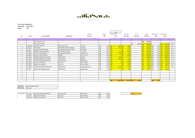 Kelas Asas Excel : Petty Cash