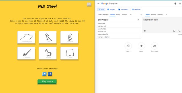 Selepas beberapa ketika, mereka diarahkan melayari pautan Quick, Draw! Dari Google. Mengunakan konsep yang sama dengan aktiviti tadi, peserta diberikan beberapa perkataan, dan mereka dikehendaki untuk melukis berdasarkan perkataan tersebut dalam tempoh waktu yang singkat. Algoritma machine learning kemudian akan mencuba untuk meneka lukisan objek tersebut berdasarkan data pola gambar yang telah dikumpulkan dari pemain yang lain. Aktiviti ini membantu dalam melatih daya kemahiran menyelesaikan masalah dan menjadi salah satu dari bahan e-Learning peserta.