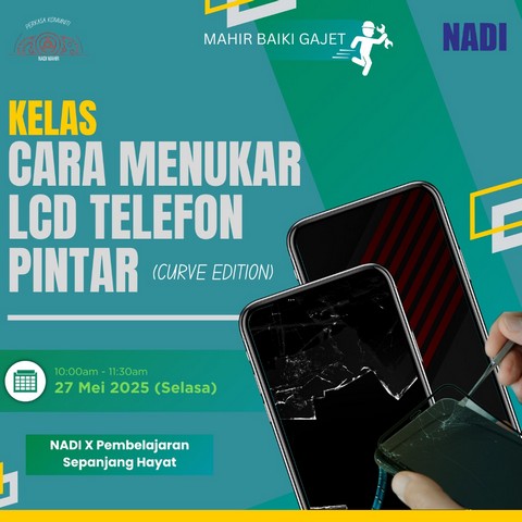 Diadakan secara langsung dari Studio NADI Mahir pada jam 10.00 pagi hingga 11.30 pagi, program ini bertujuan memberi pendedahan intensif kepada peserta mengenai teknik profesional menukar skrin LCD telefon pintar jenis skrin melengkung. Program ini diharapkan dapat membuka peluang keusahawanan baharu serta memperkasakan lagi kemahiran teknikal dalam kalangan pelatih. Antara pengisian utama yang dipelajari peserta: