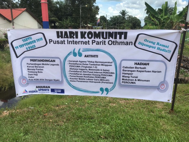 30 September 2018 | Aktiviti TerkiniPada 29 September yang lalu, Pusat Ekonomi Digital Parit Othman telah menganjurkan program Hari Komuniti bertempat di Pusat Ekonomi Digital Parit Othman. Program yang dianjurkan di kawasan PI ini telah dihadiri seramai 150 orang pengunjung yang terdiri daripada penduduk di kawasan Kampung Parit Othman.